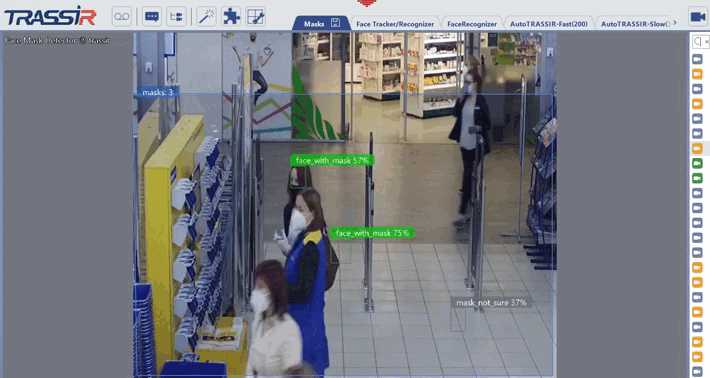 تم تصميم وحدة جهاز كشف قناع الوجه TRASSIR لمراقبة الامتثال للتدابير الأمنية في حالة الجائحة أو الوباء - ارتداء قناع طبي كوسيلة للحماية الشخصية.